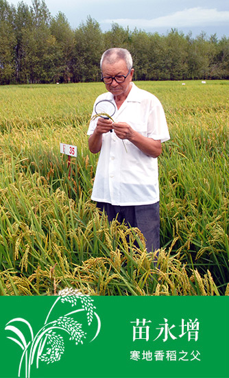 1984年,從中學(xué)教師崗位退休的苗永增,聽(tīng)說(shuō)泰國(guó)、日本香米的價(jià)格是普通大米的4~5倍,于是萌生了寒地香稻育種夢(mèng),他堅(jiān)信世界三大黑土地之一的家鄉(xiāng)雙河鎮(zhèn)一定會(huì)長(zhǎng)出香稻,同年從湖南引進(jìn)香稻品種,與當(dāng)?shù)丶霸颇系暮诘竞图值酿さ倦s交香稻收獲成熟香稻品種僅三粒,為之珍藏一冬。