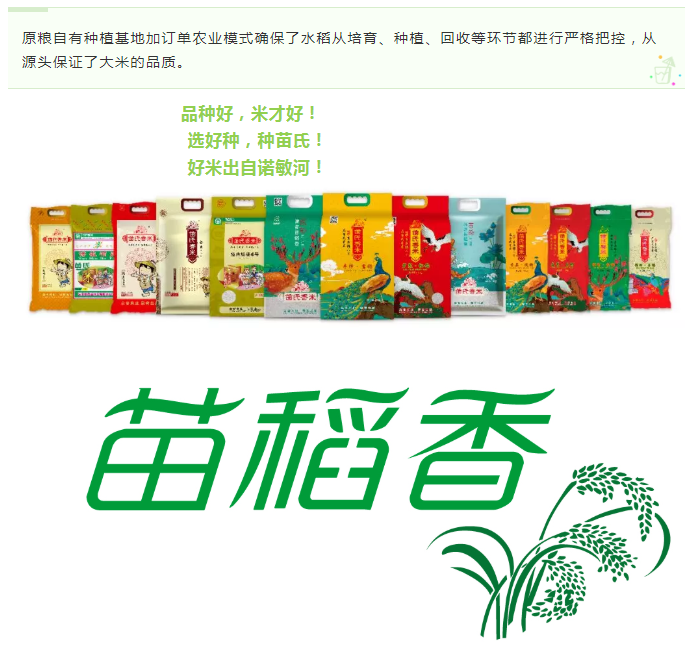 公司以“寒地香稻之父”苗永增老先生所研發(fā)的綏粳四號、苗稻2號作為水稻主要品種,堅持自主研發(fā),不斷提高品牌競爭力。同時擁有水稻優(yōu)特品種自研自繁的能力,覆蓋全國的東北香米銷售渠道及服務(wù)體系,打通了從田間地頭到百姓餐桌的全產(chǎn)業(yè)鏈。