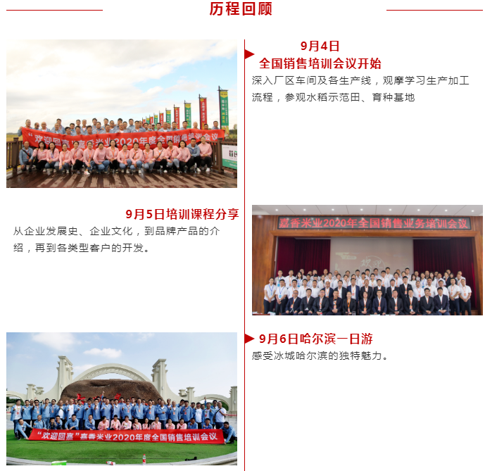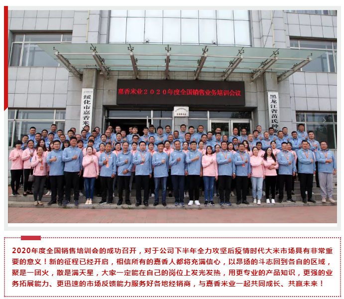 9月4日-9月7日嘉香米業(yè)召開了為期四天的全國銷售業(yè)務(wù)培訓(xùn)會,在這四天時(shí)間里銷售全員通過課程分享、團(tuán)隊(duì)建設(shè)、拓展活動(dòng)、實(shí)戰(zhàn)演練等多樣化的學(xué)習(xí)形式,進(jìn)一步增強(qiáng)了團(tuán)隊(duì)的協(xié)作意識、提升了專業(yè)業(yè)務(wù)知識和技能!同時(shí)對嘉香米業(yè)的企業(yè)文化有了更深入的了解和認(rèn)識,明晰了企業(yè)“走產(chǎn)業(yè)路,打特色牌,以惠民生”的發(fā)展戰(zhàn)略,強(qiáng)化了個(gè)人信心。全體業(yè)務(wù)人員將緊隨公司步伐,在公司領(lǐng)導(dǎo)下,堅(jiān)定走品牌化路線。堅(jiān)持以銷售市場為導(dǎo)向、種研為依托、經(jīng)貿(mào)運(yùn)營求發(fā)展。在優(yōu)特稻米為核心的新農(nóng)業(yè)產(chǎn)業(yè)生態(tài)中,奉獻(xiàn)力量。