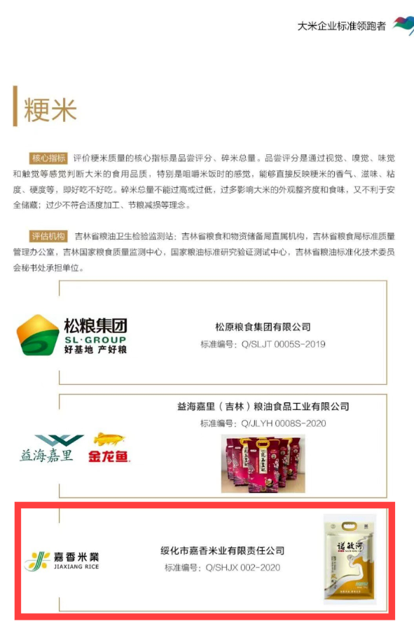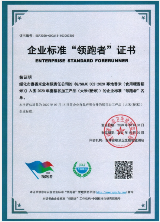 近日,由國家糧食和物資儲備局標(biāo)準(zhǔn)質(zhì)量中心評選的“2020年糧油產(chǎn)品企業(yè)標(biāo)準(zhǔn)領(lǐng)跑者”名單公布,綏化市嘉香米業(yè)有限責(zé)任公司憑借旗下優(yōu)質(zhì)品牌香米“鳳香苗稻香”,獲得該榮譽(yù)稱號。